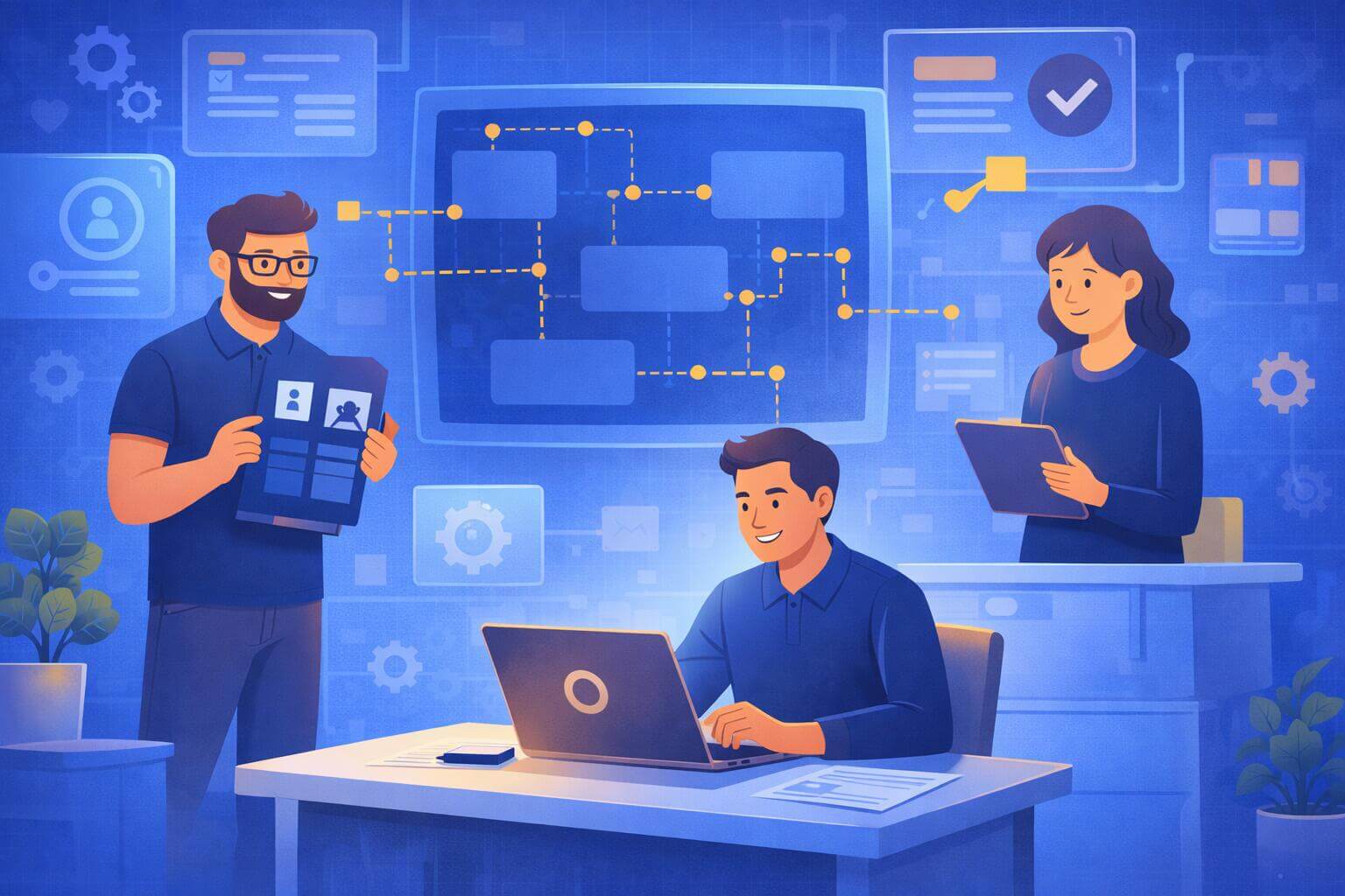 • Guided checks add human validation at key decision points.